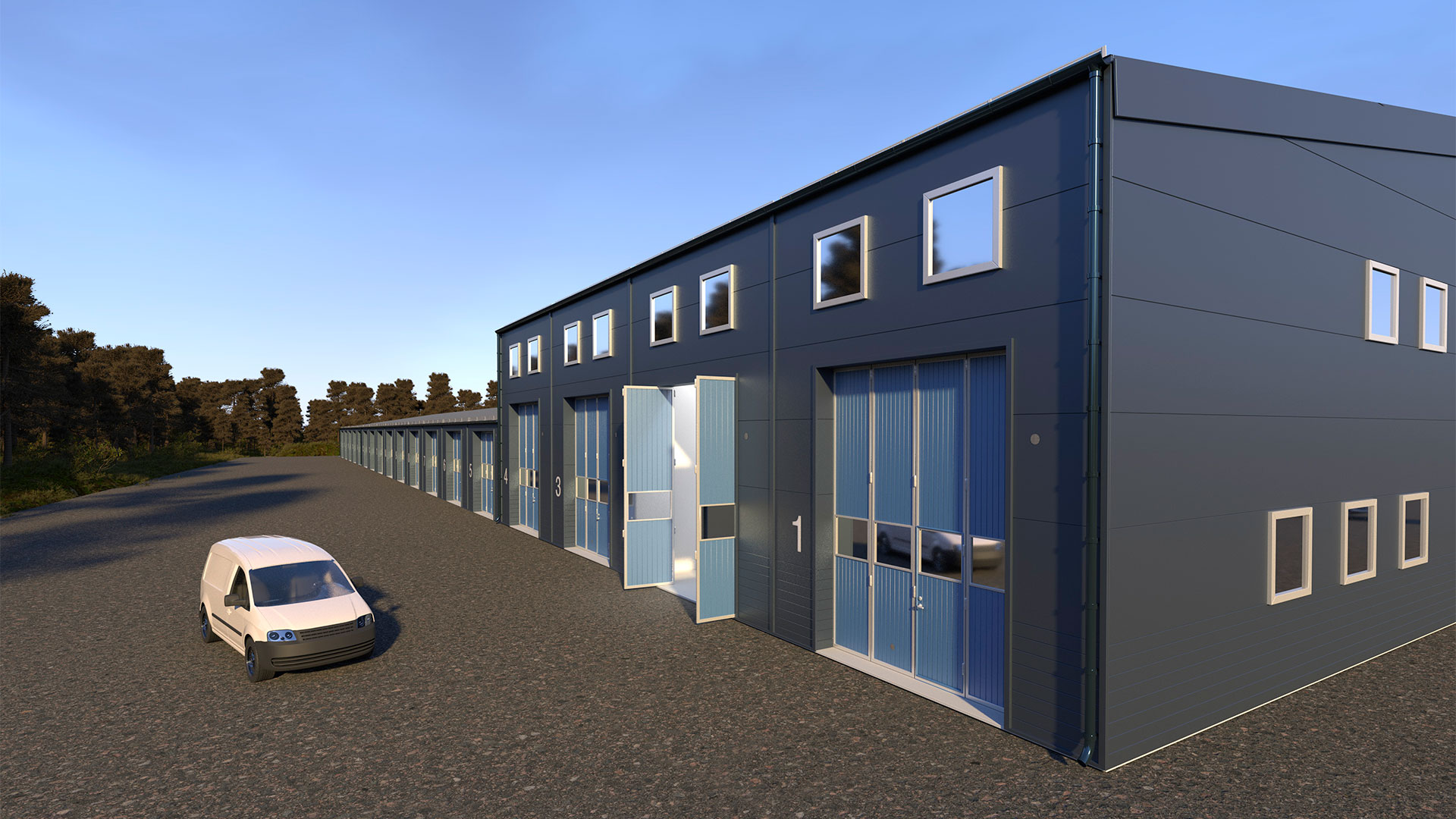 Lokalen består av en yta där du som ägare har full frihet att sätta din egen prägel på just din egna del. Varje lokal är ca 70 kvm. Lokalen byggs som en modul om ca 12×6 m och uppförs med två olika takhöjder, antingen ca 4 m vid porten och upp till ca 6 m längst in i lokalen alternativt ca 6 m vid porten och ca 8 m längst in i lokalen. Den generösa takhöjden ger utrymme att bygga ett entresolplan, vilket gör att den disponibla ytan maximeras och kan rymma ytterligare ett rum eller öka förvaringsmöjligheterna. Varje lokal förbereds för att kunna installera wc och handfat samt med möjlighet att även inreda dusch och pentry. Kommunalt VA och golvbrunn med gemensam oljeavskiljare ingår i priset och det finns förberett för el till varje fastighet. Front med vikport 4 x 3,6 m eller 4 x 4,5 m med dörr i dörr och fönster för ökat ljusinsläpp. Väggarna är naturligtvis isolerade. Smart Yta kommer även förbereda och asfaltera vägen fram och området runt om byggnaden.